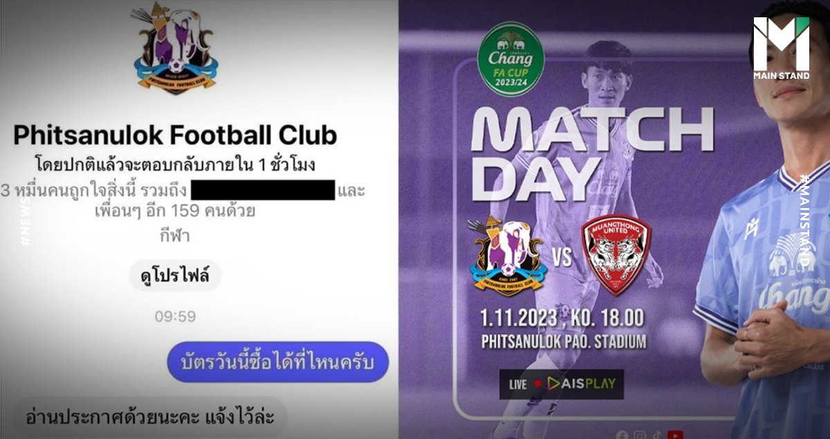 เย็นนี้เวลา 18.00น. พิษณุโลก เอฟซี จะเปิดบ้านพบกับ เมืองทอง ยูไนเต็ด ในศึกช้างเอฟเอ คัพ รอบ 64 ทีมสุดท้าย ซึ่ง็มีแฟนบอลทั้งฝั่งเจ้าบ้านและทีมเยือนที่ยังไม่มีตั๋วเข้าชม จึงได้ทักไปสอบถามแอดมินเพจ