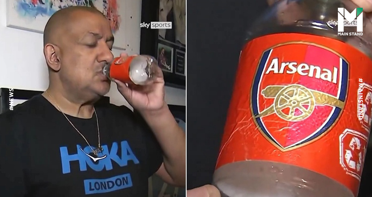 วันนั้นเขากับลูกชาย นั่งอยู่ข้างหลังม้านั่งสำรองฝั่งผู้เล่นของ อาร์เซน่อล แล้วเกิดหิวน้ำขึ้นมา เลยเอ่ยปากขอน้ำจากคนที่อยู่ตรงม้านั่ง แล้วก็ได้ขวดนี้มาดื่มดับกระหาย