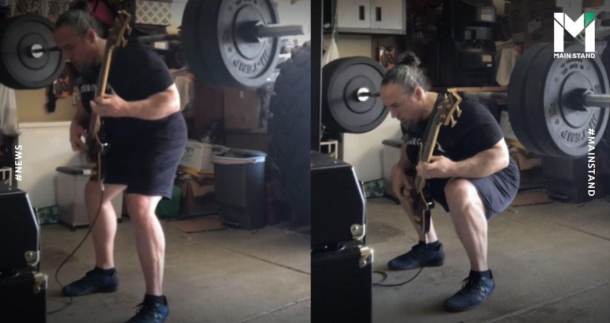 แต่การยืนหรือนั่งเล่นเบสเฉยๆ มันก็ดูจะธรรมดาไป เมอร์เซียซ่า เลยทำในสิ่งที่ท้าทายยิ่งกว่า ด้วยการเล่นเบสไปด้วย วางเหล็กน้ำหนัก 225 ปอนด์ ไว้บนบ่า แล้วทำท่าสควอชไปด้วย เล่นไป ยกไป สควอชไป ก่อนอัพโหลดคลิปลง IG ให้ชาวร็อกได้ฮือฮากัน
