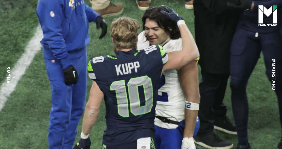 คูเปอร์ คัพพ์ กับ พูก้า นากัว สองปีกนอกต่างทีม แสดงให้เห็นถึงสายสัมพันธ์ที่ยอดเยี่ยมของทั้งคู่หลังจบเกมชิงแชมป์สาย NFC อเมริกันฟุตบอล NFL ฤดูกาล 2025