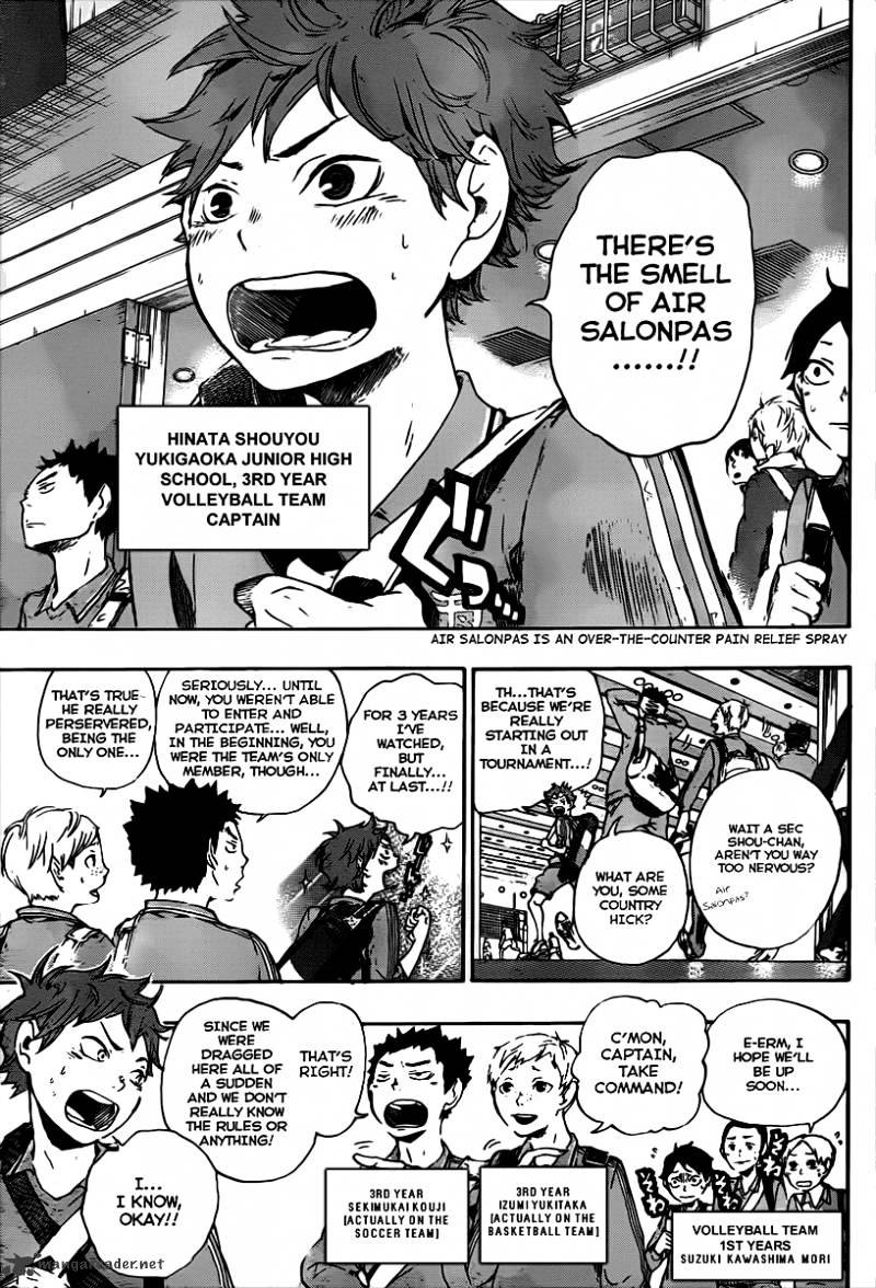 ฮินาตะ ชวนนักกีฬาจากชมรมกีฬาอื่นอย่าง บาสเกตบอล และ ฟุตบอล ให้มาเข้าทีมวอลเล่ย์บอลได้สำเร็จ โดยวิธีชวนของเขานั้น ไม่ได้เป็นการพูดโน้มน้าว แต่เป็นการแสดงให้ทุกคนเห็นถึงความพยายามอันแรงกล้าของเขา โดยเฉพาะหลังจากการแข่งทัวร์นาเมนต์แรก และต้องเจอกับทีมตัวเต็งอย่าง คิตางาวะ ไดอิจิ ซึ่งเป็นเกมที่ทีมของ ฮินาตะ ที่รอมาถึง 3 ปีกำลังจะเริ่มขึ้น เขาโดนดูถูกตามแบบฉบับดราม่าในมังงะญี่ปุ่น