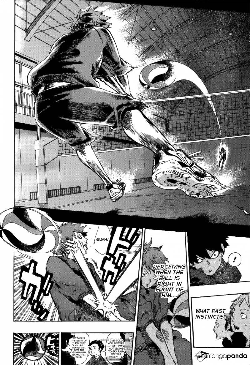คนที่ดูถูกเขาคือ คาเงยามะ โทบิโอะ เจ้าของฉายา "ราชาแห่งคอร์ต" ของทีม คิตางาวะ ซึ่งการดูถูกครั้งนี้เริ่มตั้งแต่เรื่องของส่วนสูงของ ฮินาตะ รวมถึงเพื่อนร่วมทีมที่ไม่ได้เป็นผู้เล่นที่เก่งกาจอะไรเลย