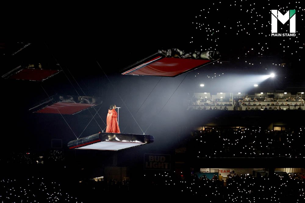 และแล้วมาถึงวันดีเดย์ 12 กุมภาพันธ์ 2023 หลังจากที่ อีเกิลส์ ขึ้นนำ ชีฟส์ 24-14 แต้มในช่วงครึ่งแรก ก็ถึงเวลาที่ริอานน่าจะได้ปรากฏกายที่กลางสนามสเตด ฟาร์ม สเตเดียม ต่อหน้าผู้ชมที่ซื้อบัตรมาชมเกมในสนาม 67,827 คน