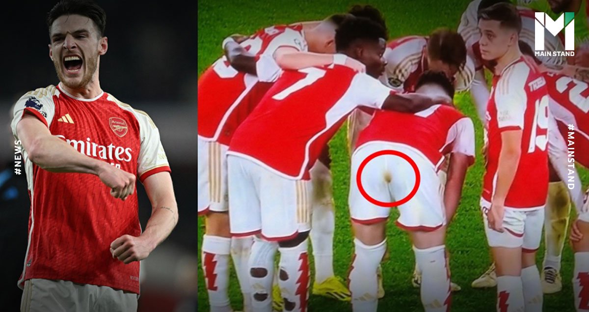 อาร์เซนอล เอาชนะ ปอร์โต้ เมื่อวันที่ 12 มีนาคม ที่ผ่านมา ทว่าเมื่อจังหวะหนึ่งกล้องจับภาพไปที่กางเกงของ ไรซ์ ซึ่งมีรอยเปื้อนอะไรบางอย่างที่บริเวณก้นของเขา ก็ทำเอาคนดูพากันคาดเดาไปต่างๆ นาๆ