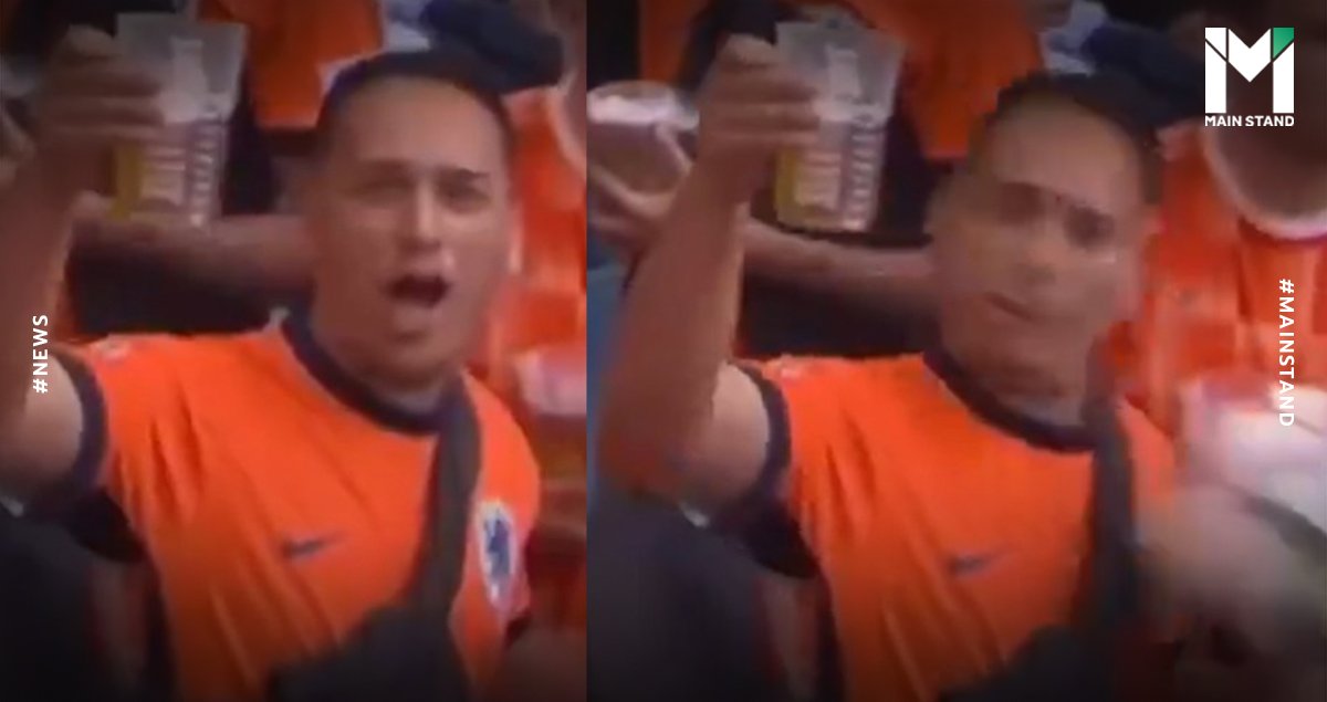 จะเรียกว่าโชคร้ายก็ได้ สำหรับแฟนบอลคนหนึ่งของ เนเธอร์แลนด์ ที่กำลังดูบอลอยู่บนอัฒจันทร์ พร้อมเล่นกับกล้องที่แพนเต็มไปทั่วสนาม จู่ ๆ ลูกฟุตบอลจากที่ไหนก็ไม่รู้ ดันพุ่งเข้ามาหาที่หน้าของเขาอย่างจัง