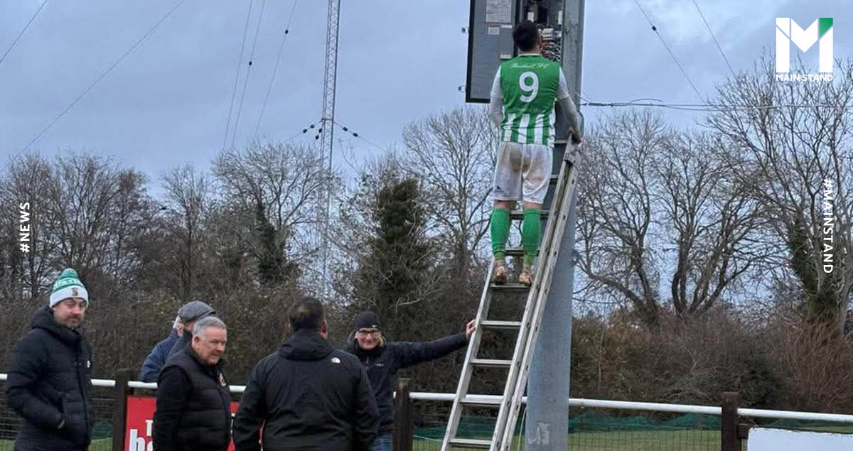 แล้วก็เป็น ชาร์ลี โคลเวอร์ ที่ปีนบันไดขึ้นไปดูกล่องไฟสปอตไลท์ให้ ทั้งที่สวมชุดนักเตะของทีม รัตฮอลล์ เอฟซี อยู่ด้วย ทว่าด้วยความที่ไม่ได้พกเครื่องมือช่างมาที่สนาม เขาเลยทำอะไรไม่ได้ และเกมนี้ก็ถูกยกเลิกไม่ได้เตะต่อในครึ่งหลัง