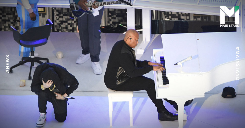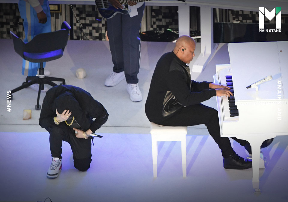 เกิดเป็นเรื่องฮือฮาขึ้นมาทั่วอินเทอร์เน็ต หลังจากจบโชว์พักครึ่งซูเปอร์โบวล์ครั้งที่ 56 เมื่อ “เอ็มมิเน็ม” แรปเปอร์จากดีทรอยต์ เด็กปั้นของ “ดอกเตอร์เดร” หนึ่งในไลน์อัพศิลปินของโชว์ประจำปีนี้ ได้ทำการคุกเข่าระหว่างการแสดง โดยเชื่อว่าเป็นการให้เกียรติกับ “โคลิน แคเปอร์นิค” อดีตผู้เล่นตำแหน่งควอเตอร์แบ็คของทีม ซานฟรานซิสโก โฟร์ตี้ไนเนอร์ส