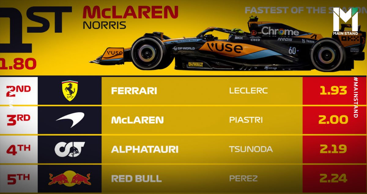 ตามด้วยอันดับที่ 2 ของ ชาร์ลส เลอแคลร์ จากทีมเฟอร์รารี่ ด้วยเวลา 1.93 วินาที และอันดับที่ 3 เป็นของ ออสการ์ ปิแอสตรี เพื่อนร่วมทีมแมคราเลน เวลา 2.00 วินาที
