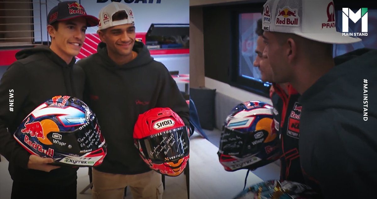 กลายเป็นโมเมนต์สุดประทับใจหลังจากจบการแข่งขัน MotoGP 2023 ที่บาเลนเซีย ประเทศสเปน เมื่อ ฆอร์เก มาร์ติน นักบิดชาวสเปนจากทีม พรีมา พราแม็ค เรซซิ่ง เดินขอแลกหมวกกันน็อกกับสองนักบิดชื่อดังเป็นของที่ระลึก