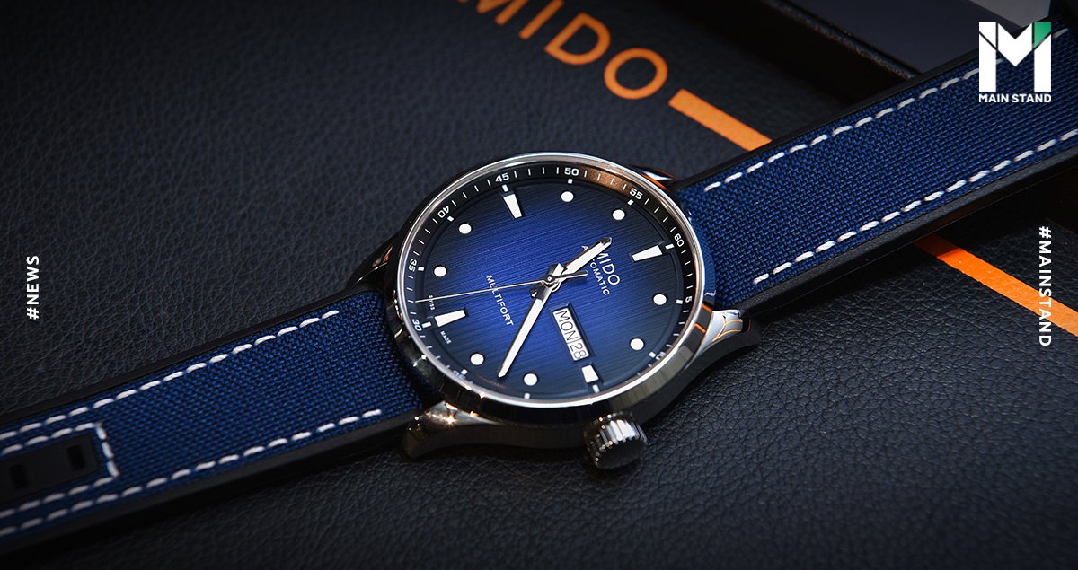 ถัดมาที่ มัลติฟอร์ท เอ็ม (Multifort M) ที่สุดแห่งพละกำลังที่ “มิโด” (MIDO) ได้ถ่ายทอดเอกลักษณ์ของความแข็งแกร่งและความทันสมัยด้วยการเผยโฉมเรือนเวลาหน้าปัดขัดซาตินแนวตั้งพร้อมพื้นผิวไล่ระดับจากสีน้ำเงินไปจนถึงสีดำ มาพร้อมพรายน้ำเรืองแสงสีเขียวอมฟ้า และมีช่องแสดงวันและวันที่ที่ตำแหน่ง 3 นาฬิกา ซึ่งเหมาะอย่างยิ่งสำหรับการใช้งานในชีวิตประจำวัน ประกอบกับกระจกคริสตัลแซฟไฟร์ที่มีการป้องกันแสงสะท้อนทั้งสองด้านช่วยให้มองเห็นได้ชัดเจน ซึ่งรูปลักษณ์ที่โดดเด่นได้ถูกจับคู่มาอย่างชาญฉลาดกับกลไกที่ทนทานและทันสมัย ด้วยระบบการขับเคลื่อนคาลิเบอร์ 80 (Caliber 80) ที่สำรองพลังงานได้นานถึง 80 ชั่วโมง พร้อมบาลานซ์สปริงนิวาครอง (Nivachron™) สัญลักษณ์แห่งความทนทาน จึงส่งผลใหม่ มัลติฟอร์ท เอ็ม (Multifort M) เป็นเรือนเวลาที่สมบูรณ์แบบและเหมาะกับทุกสถานการณ์