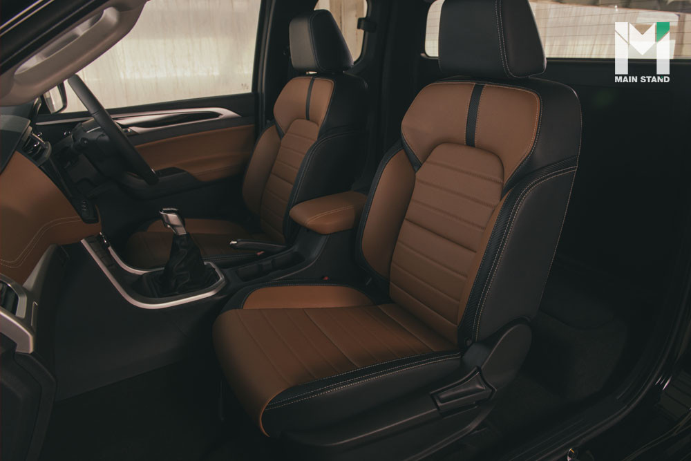 มองครบรอบคันยังไม่พอ ภายในของ MG EXTENDER นั้นถือว่าโดดเด่นมาแต่ไกลด้วยห้องโดยสารขนาดใหญ่ด้วยคู่สีทูโทนน้ำตาล-ดำ คอนโซลและประตูตกแต่งด้วยวัสดุ Soft Touch ที่ทำให้ดูสบายตาและนุ่มนวลเมื่อได้นั่งอยู่ภายใน