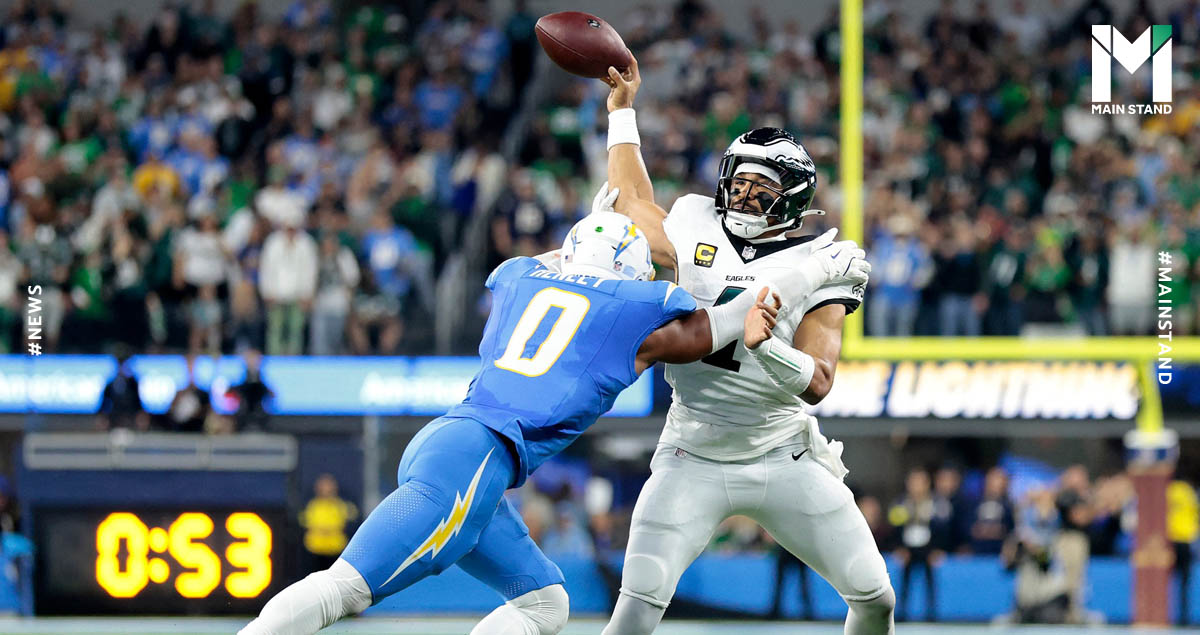 เจเลน เฮิร์ทส์ ควอเตอร์แบ็กคนเก่งของ ฟิลาเดลเฟีย อีเกิ้ลส์ ในอเมริกันฟุตบอล NFL ทำสถิติสุดพิเศษที่ไม่น่าจดจำ ด้วยการทำเสียเทิร์นโอเวอร์ 2 ครั้งในการครองบอลครั้งเดียว