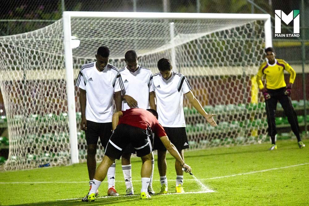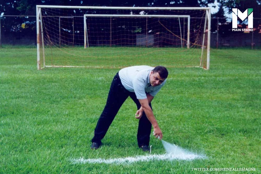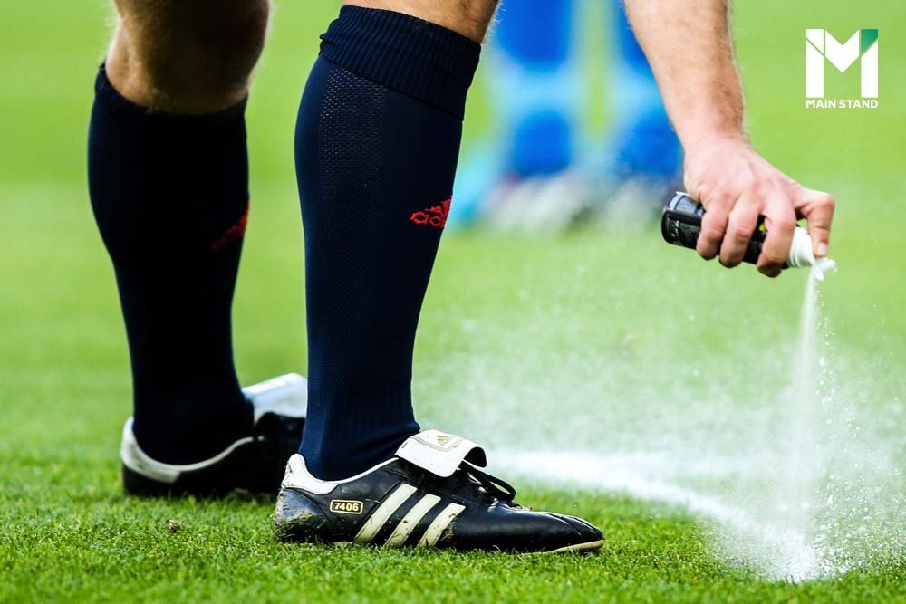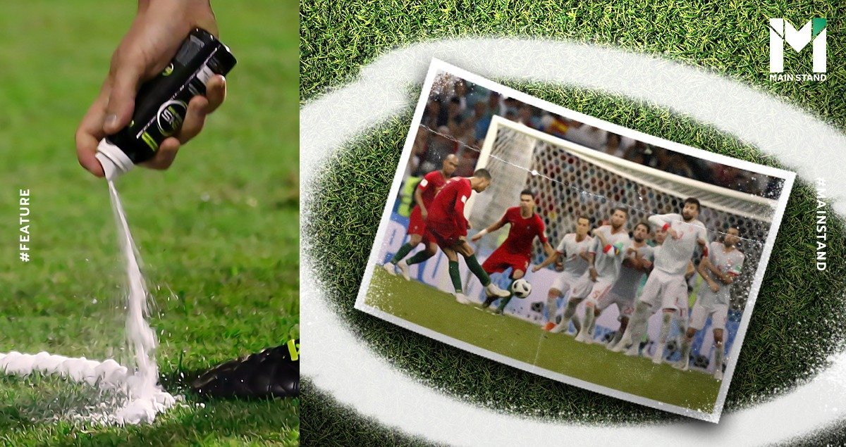 The idea of spraying to indicate marks for the wall and freekick location started in 2000 from a group of Brazilian.